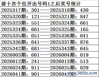 四、个位分析:上期开出号码1,前10次号码1出现之后下期同位号码为:0715165939,其中号码大小比为6:4,基本持平;奇偶比为8:2,偶数号码走势相对较冷;012路比为5:3:2,2路号码走势相当冷。本期参考号码:8。