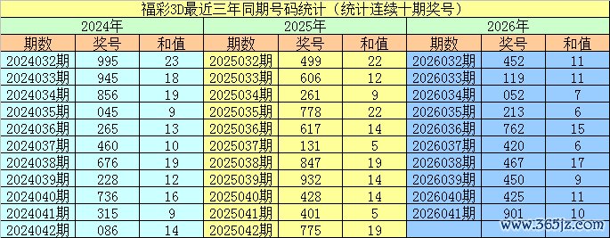 2025032期开奖号码:499;2026032期开奖号码:452